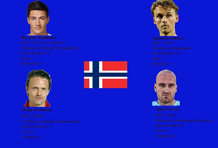 Матиас Норманн. Один из самых успешных норвежцев на российских полях. Перейдя в «Ростов» из «Брайтона» в январе 2019 года за 1.7 млн. евро стал важным игроком. Был в аренде в московском «Динамо». Стал изгоем в своей стране за то, что не уехал из России когда нужно было, но в конце концов всё же был отпущен по просьбе самого футболиста в саудовский «Аль-Раед». Сейчас судится с «Ростовым» из-за разрыва контракта. Он должен российскому клубу 3 млн. евро.