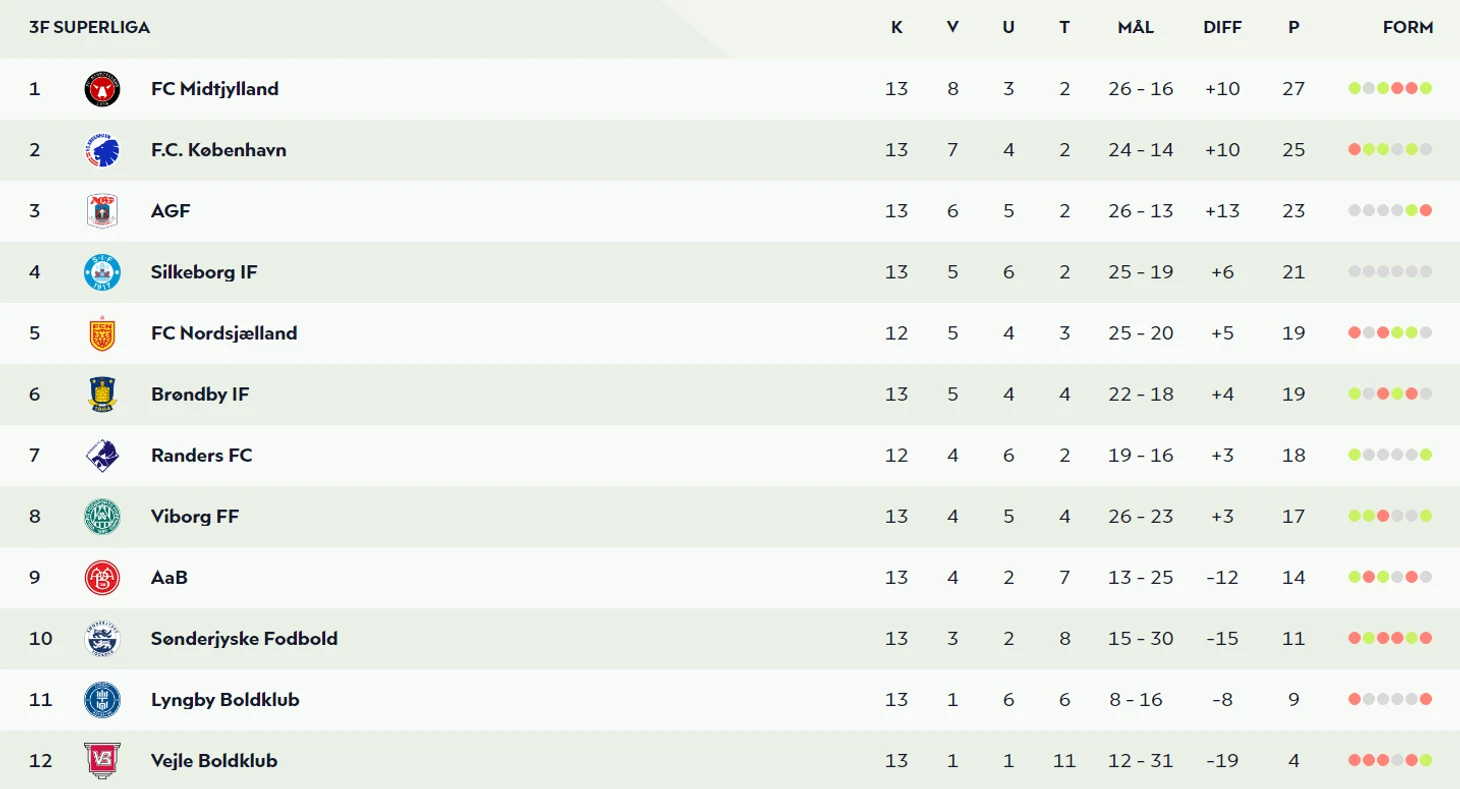 • «Копенгаген» вновь оказался на второй строчке, пропустив вперед «Мидтьюлланн».