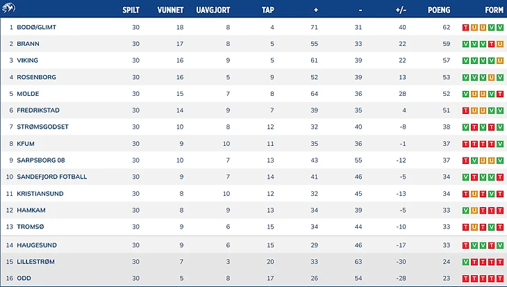 Последний тур чемпионата Норвегии проходил с небольшими интригами и получился интересным.