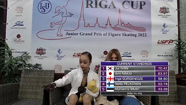 Впрочем, на латвийском этапе ультра-си может показать не только Гургенидзе. Тройным акселем владеет также японка Ами Накаи, которая пока идет третьей. Иногда она его недокручивает, но на турнире Coupe de Printemps-2022 в прошлом сезоне исполнила чисто.