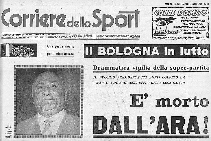 3 июня главы лиги и президенты клубов встретились, чтобы утрясти последние детали. Было жарко. Далл’Ара, не оправившийся от болезни и нервного перегруза, почувствовал себя плохо и умер на плече Анджело Моратти.