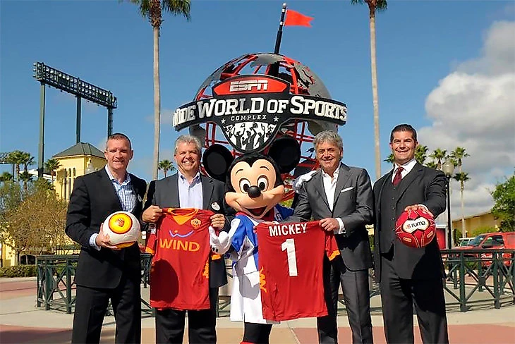 В 2012-м римляне подписали шестилетний контракт с Walt Disney World в Орландо. Микки-Маус, Гуфи и другие герои в Диснейленде продаются в цветах «джаллоросси». «Рома» несколько раз посещала Орландо во время ежегодного Shootout Memorial Day – крупнейшего в США футбольного турнира (3 дня, 660 команд, 1100 матчей). В нем участвуют чуть ли не все американские подростки, занимающиеся соккером, и единственный большой клуб, который они видят вживую – «Рома».