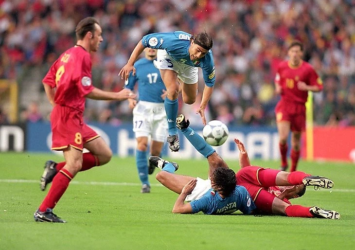 На Евро-2000 Каннаваро и Неста дошли до финала, пропустив один гол лишь в первом матче. В полуфинале Италия играла с голландцами – страшной командой Клюйверта и Бергкампа, которая в четырех матчах забила 13 голов. Итальянцы остались в меньшинстве на 34-й минуте, два часа удерживали 0:0 и победили в серии пенальти, а Тольдо после матча хвастал своими защитниками: «Голландцы не забили бы нам и за 24 часа».