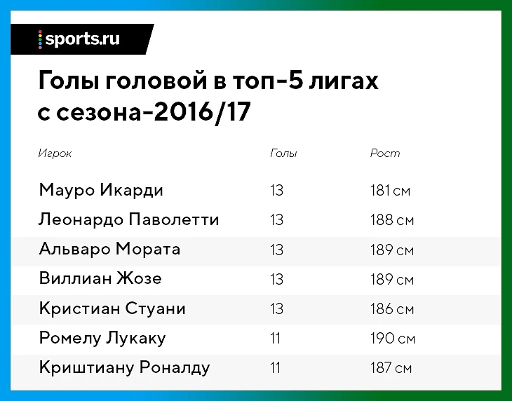 «Зверь» – так чаще всего описывают Икарди в штрафной площади. И дело не в том, что он делает, а в том – как он это делает. Невероятное чутье превратило его в идеального киллера: защитники на 10 килограммов больше и 10 сантиметров выше закрыть его просто не способны. С сезона-2016/17 181-сантиметровый Мауро – в лидерах по голам головой в топ-5 лигах.
