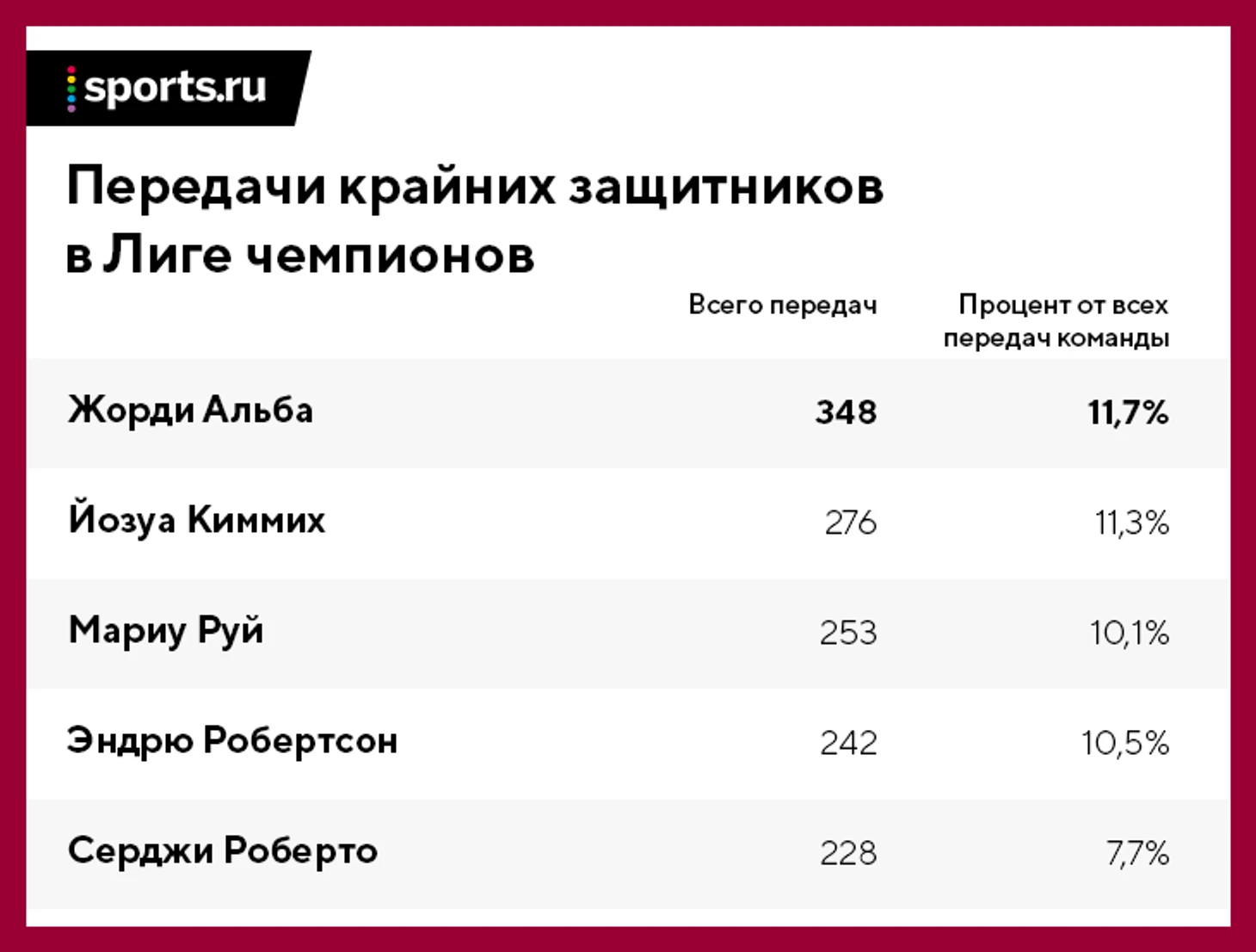 Скорости и ловкости хватает, чтобы вписать каталонца в топ лучших латералей современности, но Жорди хорош не только ими. С ним мало кто сравнится по обычным показателям, а по влиянию на игру – почти никто.