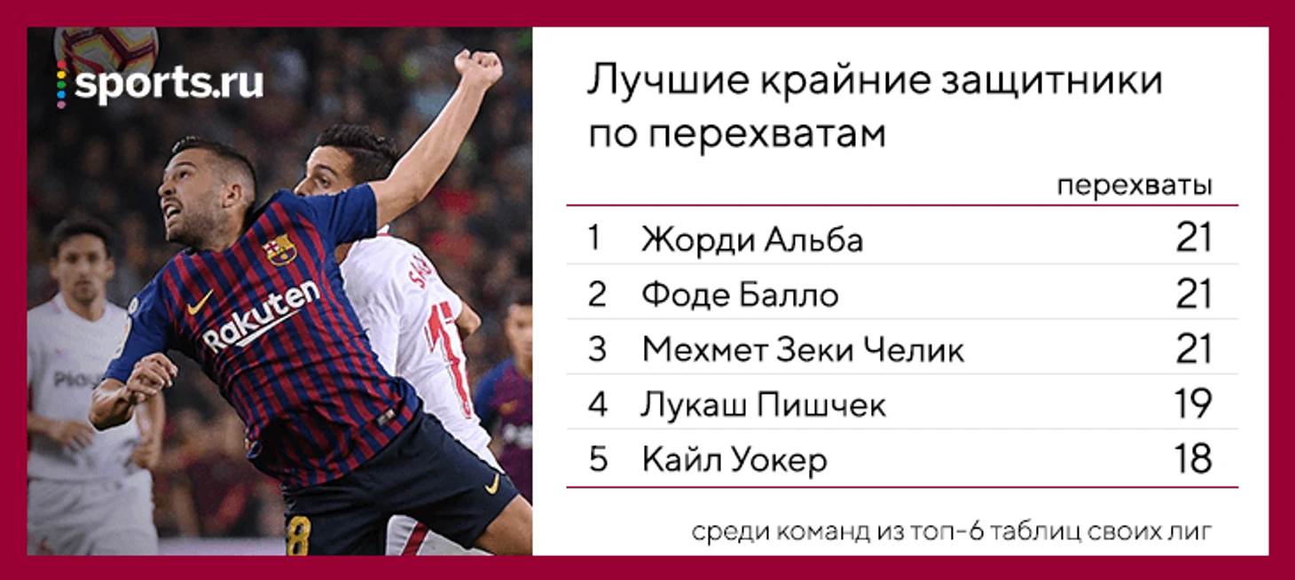 И все-таки Серхио Рамос не зря назвал Альбу одним из лучших защитников мира: в большинстве показателей он превосходит всех конкурентов. На левом фланге у «Барсы» всего две проблемы: отсутствие сменщика у Жорди и любовь Дембеле к фастфуду.