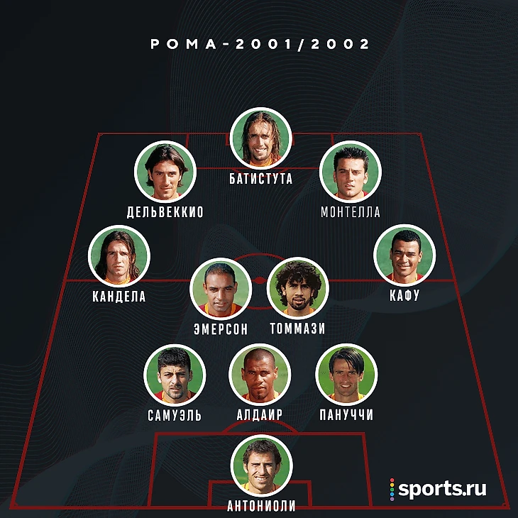 Хребет команды остался прежним: команда стального Капелло держалась на мощной обороне с Самуэлем, Кафу и Кандела и кусачем центре поля с Эмерсоном, Лимой (тем самым, что позднее засветился в «Локомотиве») и вечным Дамиано Томмази – говорили, что после матча у него остаются силы на марафон. В атаке римляне полагались на креатив Монтеллы, Кассано и Тотти и чутье прямолинейных и пробивных Батистуты и Дельвеккио.