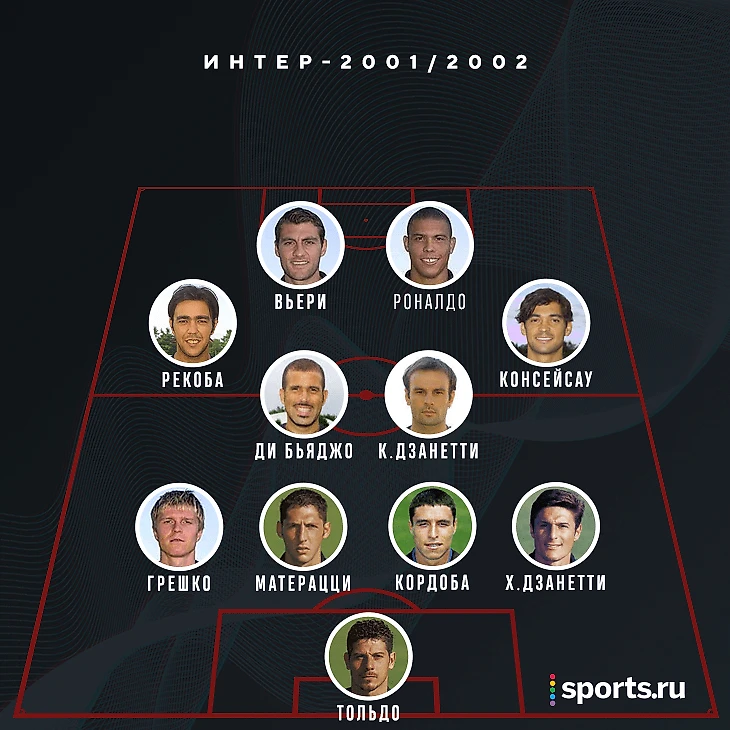Новичкам нужны были шкафчики в раздевалке, так что «Интер» ловко продал бесперспективных Пирло (да-да, Пирло) и Робби Кина и расстался с постаревшими Юговичем и Бланом. Моратти собрал мощную, но несбалансированную команду: в основе вместе с убойным атакующим кулаком из Роналдо и Вьери (Феномен в итоге пропустил почти весь сезон из-за травм, но Кристиан забивал почти в каждом матче) выходили персонажи вроде Вратислава Грешко.