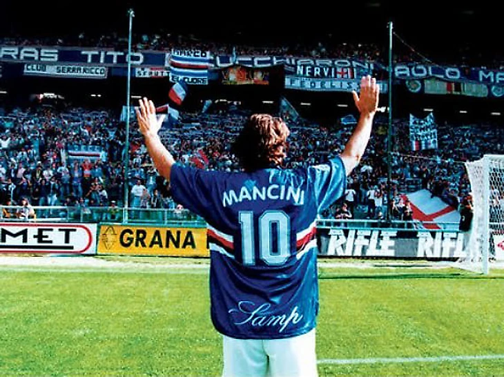 Когда в 1982-м 18-летний Манчини перешел в «Сампдорию», в ее музее не было ни одного трофея. Она считалась вечным неудачником, только что выбралась из серии B и даже в Генуе всегда оставалась второй. Когда в 97-м Манчини ушел, «Сампдория» входила в топ-10 самых титулованных клубов Италии. С ним она выиграла скудетто, Кубок кубков и четыре Кубка Италии.
