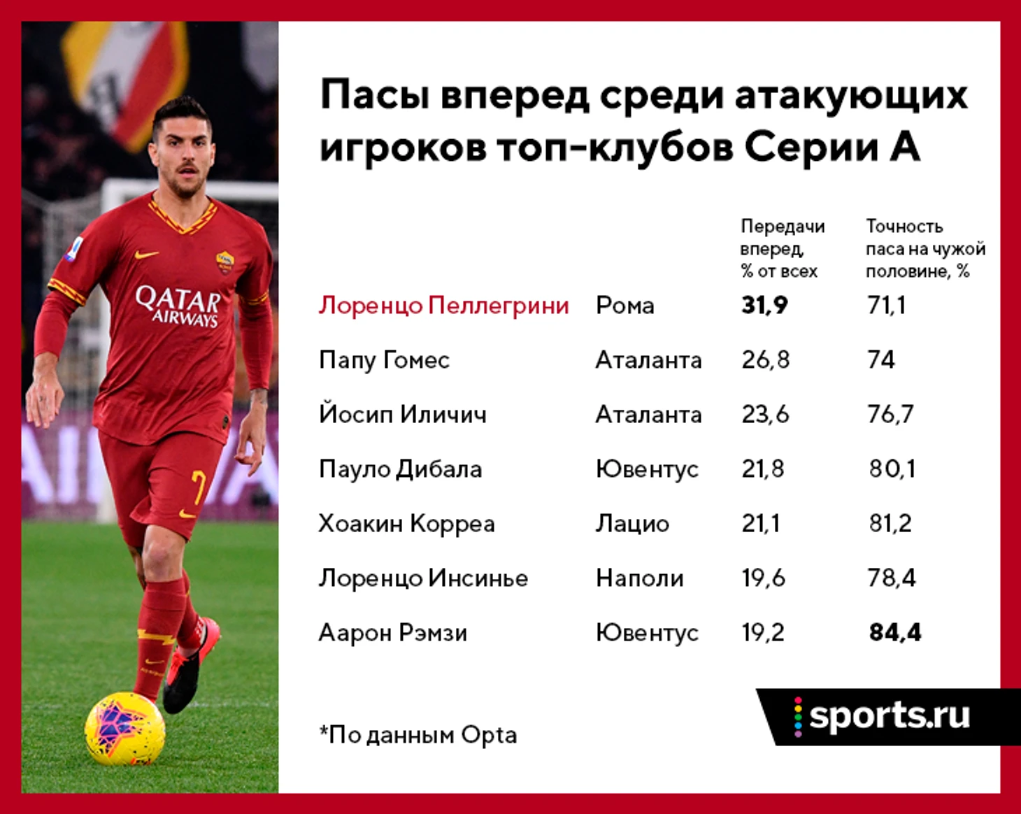 Сегодня 23-летний Пеллегрини – самый дерзкий треквартиста Серии А. Он отдает вперед почти 32% передач. Такие цифры редко показывают даже опорники, а на позиции под нападающими, где впереди всего четверть поля и пара напарников в численном меньшинстве, статистика Лоренцо феноменальна – особенно во времена, когда пас назад больше не играет роль страшилки в футбольных школах.