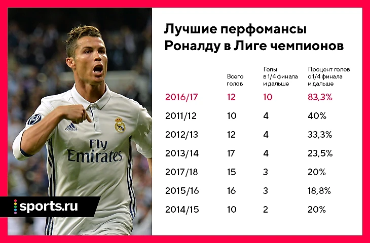 Выступление Роналду уникально. Ни один бомбардир в истории турнира не повлиял на итоговый расклад больше, чем Криш в сезоне-2016/17.