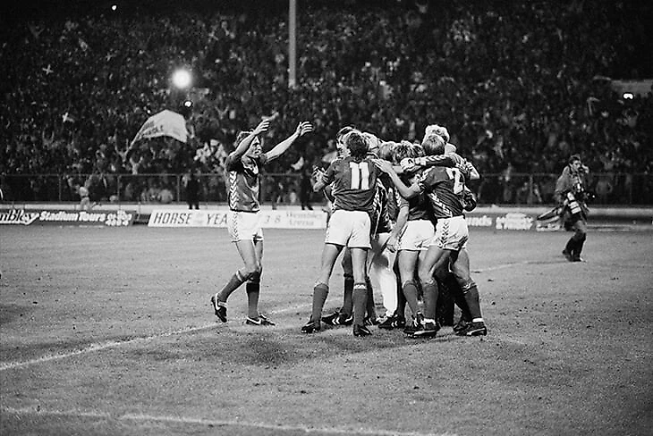 Взрывная команда приехала на Евро теневым фаворитом и в первом же матче едва не остановила прекрасную Францию Идальго и Платини. Во втором туре датчане казнили Югославию – 5:0, причем матч чудом не пробил тотал больше 15. В третьей игре команда устроила войну с Бельгией и со счетом 3:2 выбралась в полуфинал. Стадион во время матча можно было занести на карту горячих точек. В электрической атмосфере судья толкал Берггрина, а Мортен Ольсен едва не подрался с одноклубником по «Андерлехту» Рене Вандерейкеном. Защитник впал в берсерковое забытье: «Будь у меня пистолет, я бы его пристрелил».