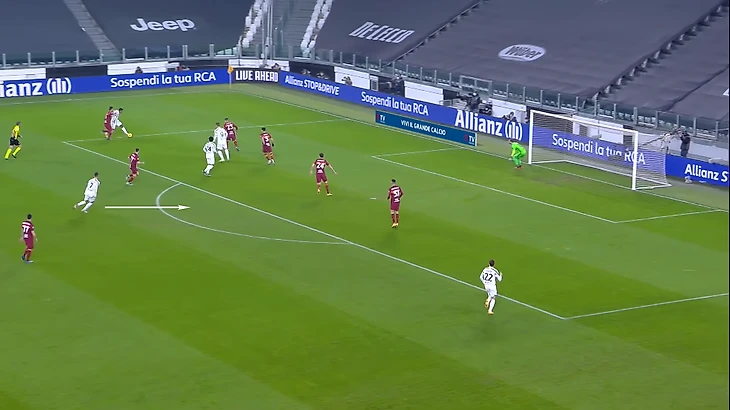 Защита реагирует, и Роналду получает еще больше простора. Ему даже не пришлось искать свободную зону – испанец создал ее из ничего. Через мгновение Криштиану забьет.