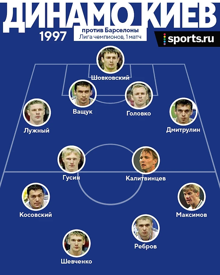 При этом схема и роли менялись в зависимости от соперника, и именно тактическая гибкость обеспечила итоговое преимущество. Лобановский отказался от фирменного жестокого прессинга, отдал мяч и защищался на своей половине, приняв правила «Барсы» и одновременно обернув их в свою пользу. Тогда еще мало кто знал, что 50 метров пространства за спинами защитников, когда играешь против Ребровы и Шевы – почти приговор, но осенью 97-го это запомнили все.
