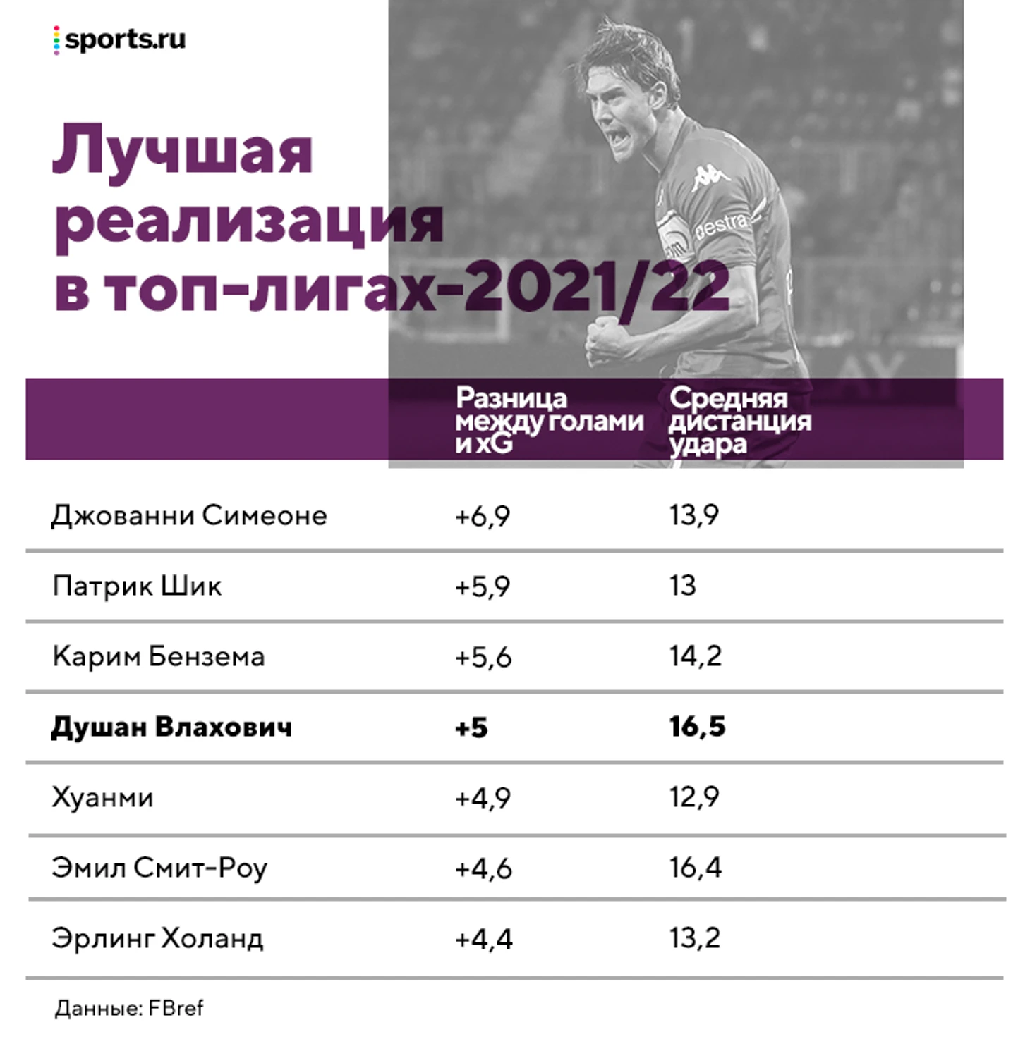 Стилистически Душан – мобильная девятка. У него нет выдающейся техники, тайминга открываний или способности испаряться с радаров. Он форвард прямой и конкретный, изматывающий напором и силовыми дуэлями. Сложные ситуации разруливает выдающаяся левая. Влахо входит в четверку лучших игроков топ-лиг по реализации моментов. Правда, есть риск, что на дистанции разница между забитыми и xG пойдет на спад.