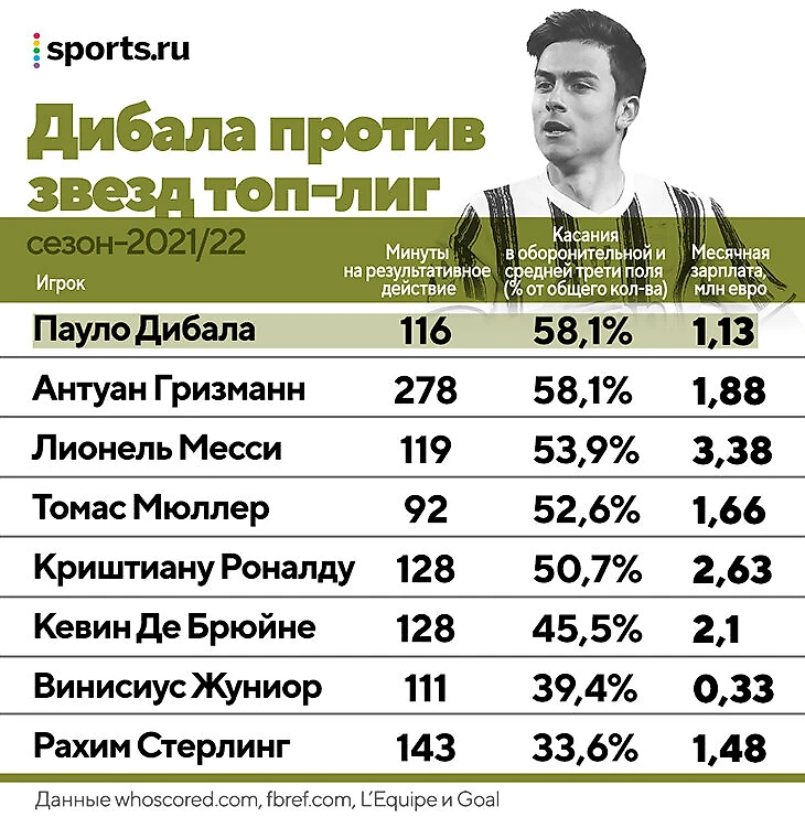 2. Недоработки в защите - старый миф. На своей позиции Дибала - выше среднего по отработке. Например, прессингует в 1,5 раза больше Влаховича и сопоставимо с Кьезой и Моратой.