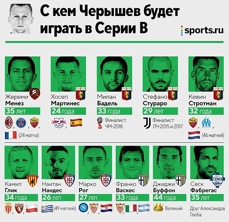 Фото: instagram.com/cheryshev90 ; veneziafc.it; Gettyimages.ru/Jasmin Walter / Stringer , Maurizio Lagana / Stringer, Dean Mouhtaropoulos, Stuart Franklin, Angel Martinez / Stringer ; globallookpress.com/Vegard Gross/Keystone Press Agency, Phil Duncan via www.imago-images/www.imago-images.de , IMAGO/Giuseppe Maffia , Fabio Murru/Keystone Press Agency IMAGO/www.imagephotoagency.it