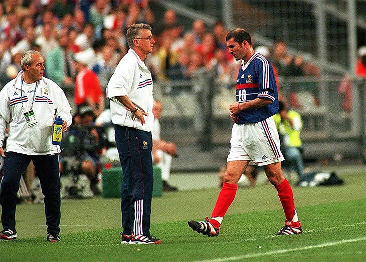 Во втором туре Зидан получил прямую красную за попытку проткнуть шипами лежащего аравийца, привычно эпично покинул поле и пропустил два следующих матча – игру с датчанами в группе и сложный матч 1/8 с парагвайцами Чилаверта. Французы продрались без него.