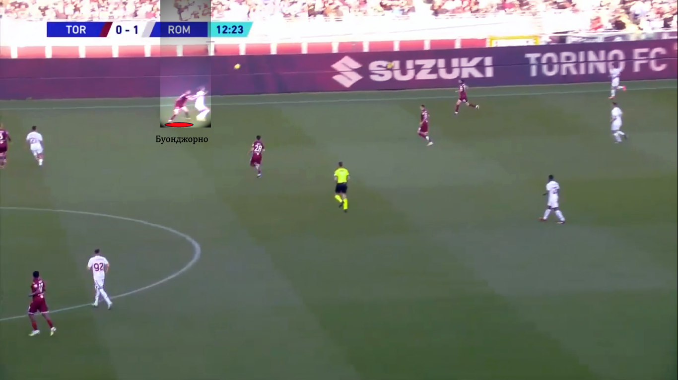 У римлян остается один надежный вариант – заброс вперед. Но он не подготовлен и потому обречен: Буонджорно сминает менее атлетичного форварда и возвращает команде владение.