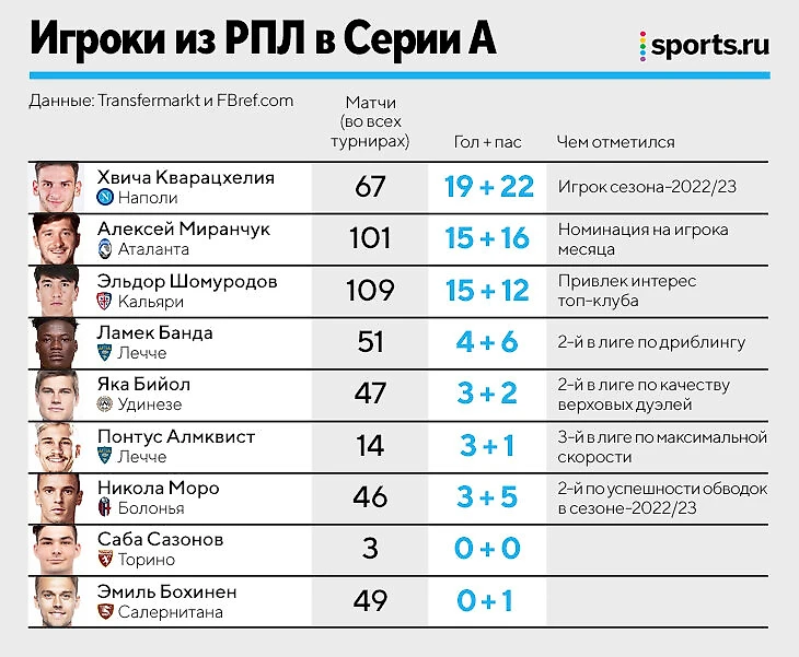 2023-й же количественно доказал превосходство итальянского направления для тех, кто целит в топ-лигу прямо из РПЛ.