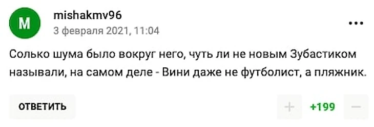 Под той новостью на Sports.ru плюсовали такие комментарии: