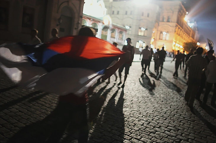 А потом пошли на улицу. Думали поехать в центр, но не поехали, потому что веселья хватало и на районе. Я никогда не видел Войковскую и улицу Космодемьянских такой: люди ехали на машинах, с флагами, с дудками, все праздновали до глубокой ночи.