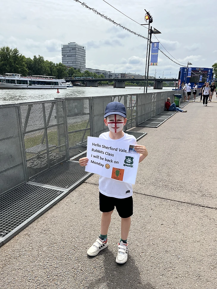 На бумажке у парня написано: «Привет, класс «Кролики» в Sherford Vale (это школа в Шерфорде, где у каждого класса есть название по животному – кроме кроликов, там лисы, ежи, воробьи – Спортс)! Я вернусь в понедельник 😊».