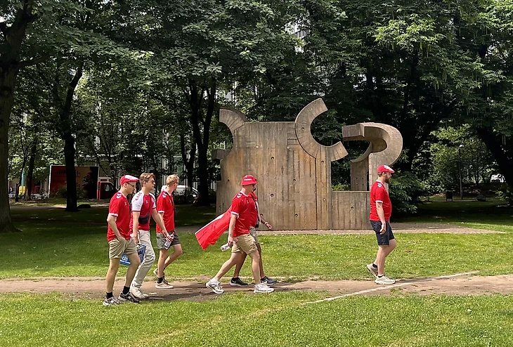 По совету Лезли отправляюсь в фан-зону и вижу: датчане тут в явном меньшинстве.