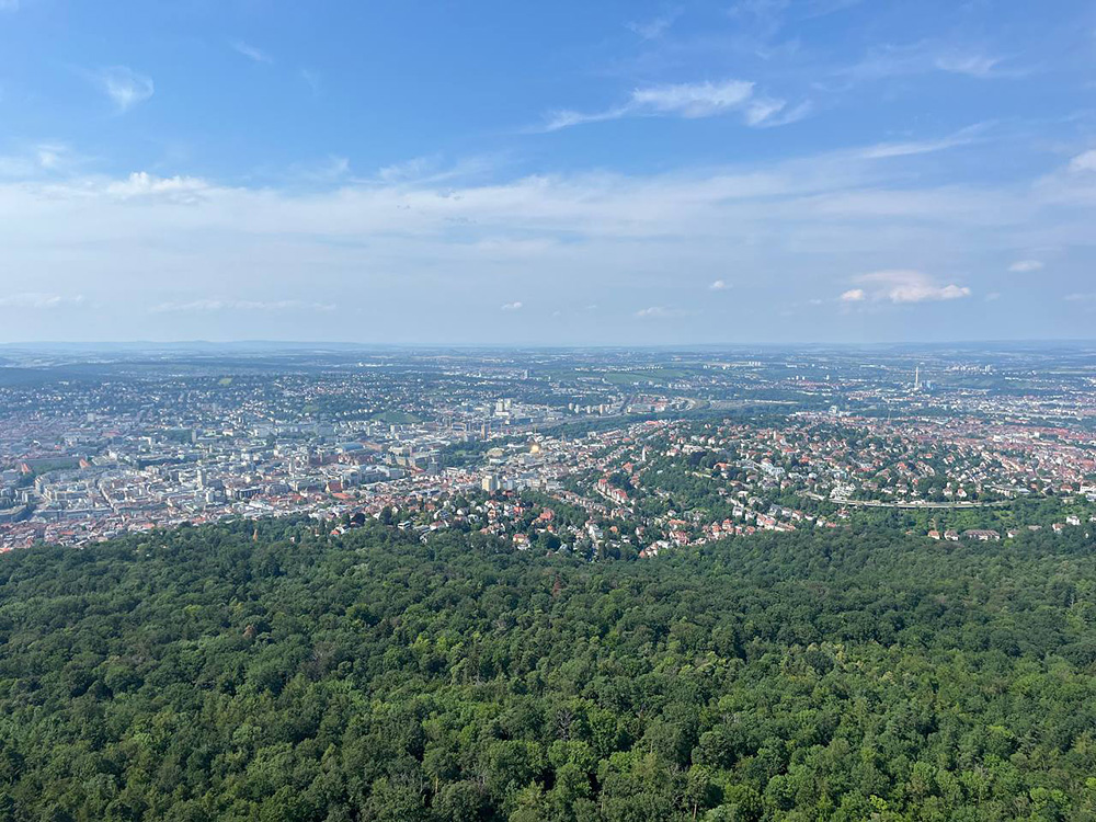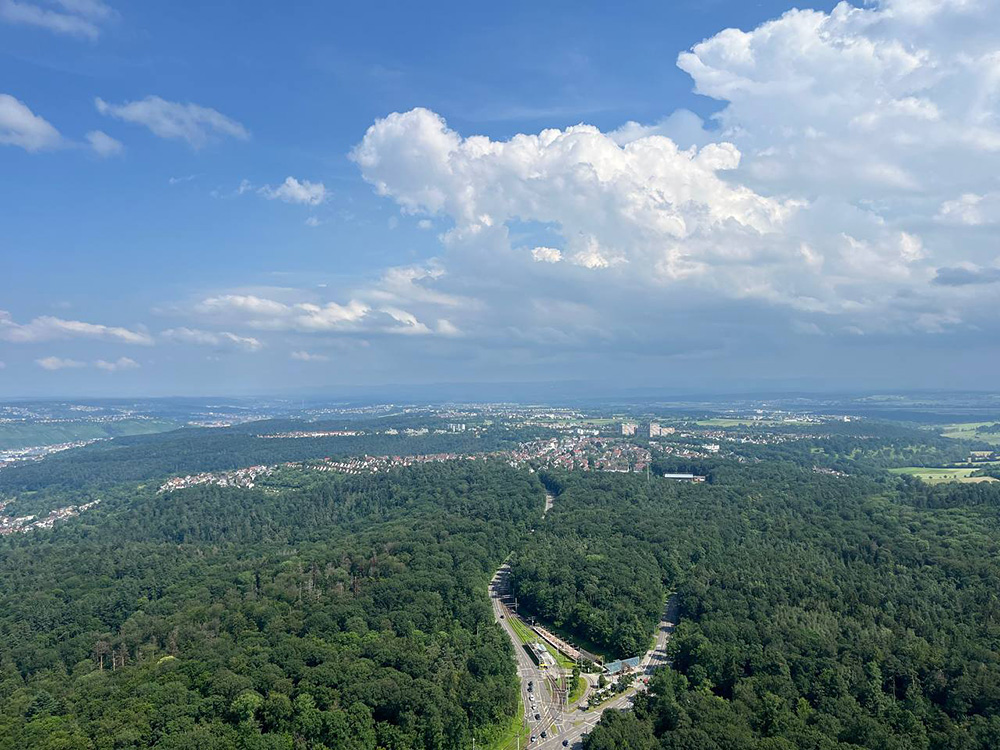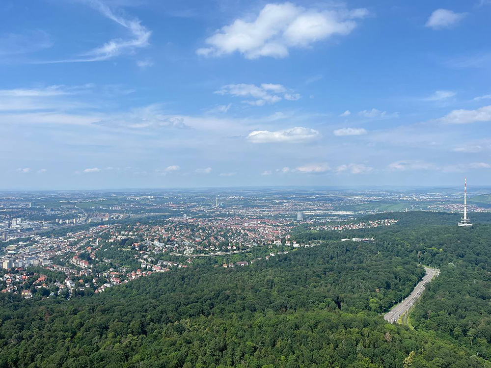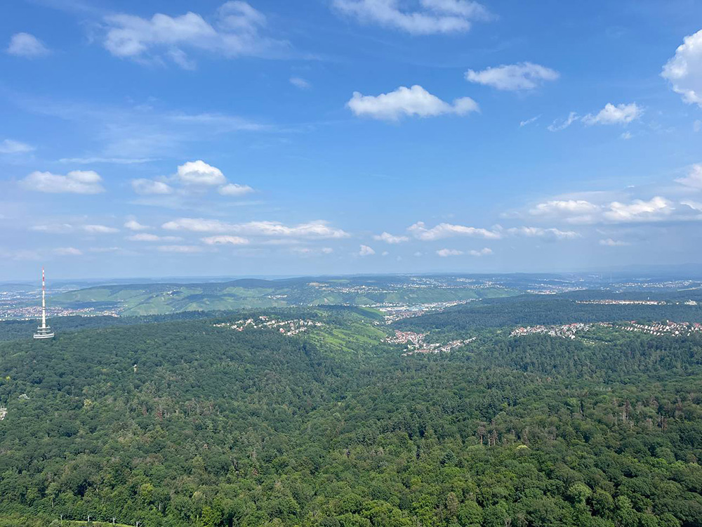 Передо мной открывается очень красивый пейзаж. Виден не только Штутгарт, но и зеленые зоны с виноградниками в округе и горные массивы Швабский Альб и Шварцвальд.