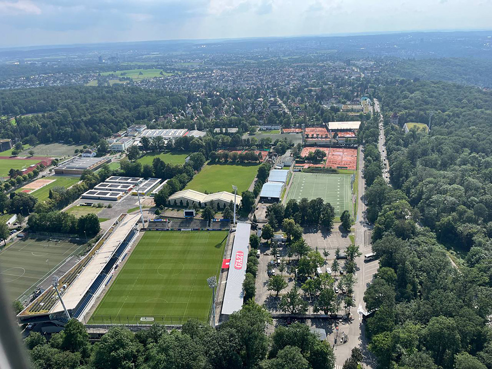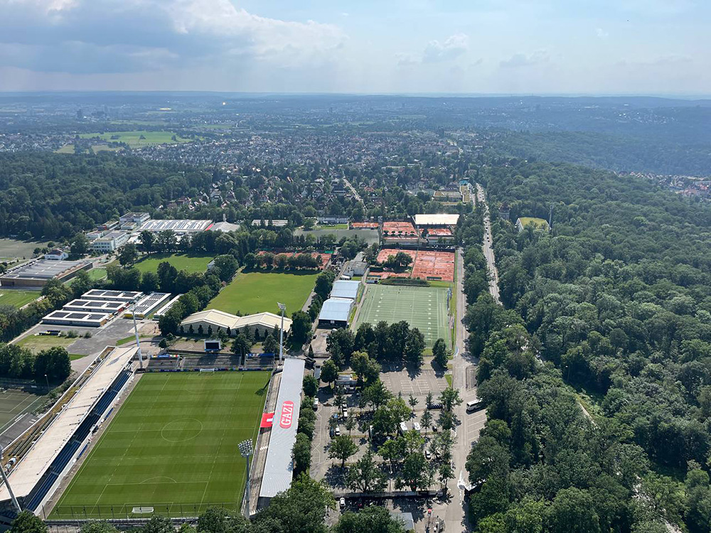 Все тренировки на Евро-2024 Швейцария проводит на 11-тысячном стадионе «Вальдау», где играют «Штутгартер Киккерс» из немецкой региональной лиги. Смотрю на карту и понимаю, что от башни до стадиона – не больше 200 метров.