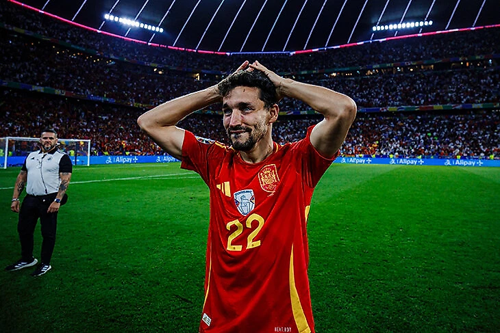 Идет 120-я минута четвертьфинала с Германией, и Дани Карвахаль получает красную. Безальтернативный герой всех важных матчей Евро: по 90 минут с Хорватией и Италией, 81 минута против Грузии, 119 – против Германии.