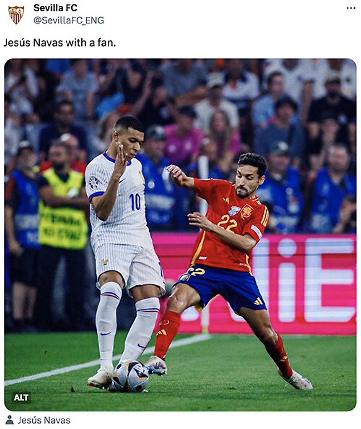 Подтверждение – издевательский твит «Севильи»: «Хесус Навас с фанатом».