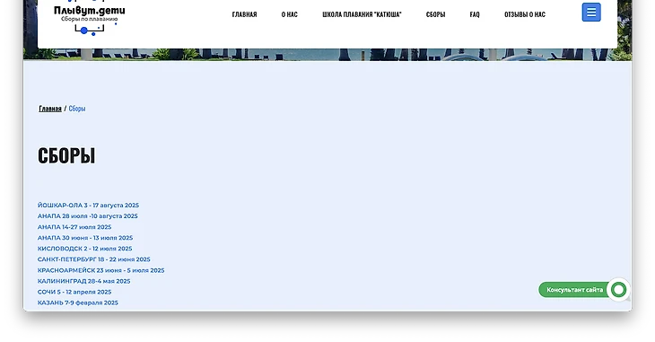 Захожу на сайт «Плывут. Дети». В плане – три сбора в Анапе (с 30 июня по 13 июля, с 14 по 27 июля и с 28 июля по 10 августа). Стоимость – 94 тысячи рублей.