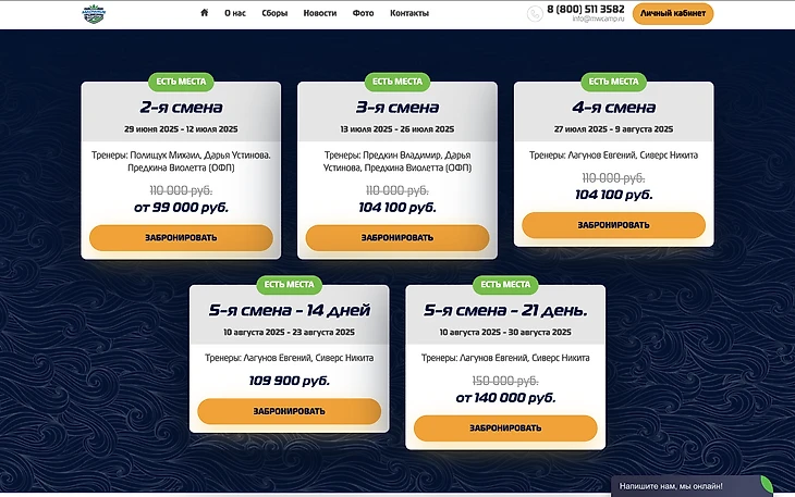 На сайте Mad Wave Camp в разделе «Контакты» указан только телефон отдела продаж (он же виден и в правом верхнем углу скриншотов).