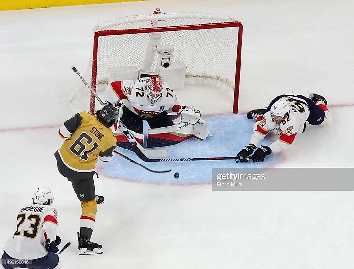 Давление «Флориды» в конце концов привело к удалению в середине периода, и в большинстве «Пантерс» организовали роскошный шанс для одиноко стоявшего перед воротами Александра Баркова. Он качнул Хилла, но тот в последний момент вытянул ногу и сумел остановить его бросок. 18 секунд спустя Стоун всё в том же меньшинстве убежал 1-в-0 и отправил шайбу под перекладину. После этого «Голден Найтс» было уже не остановить.