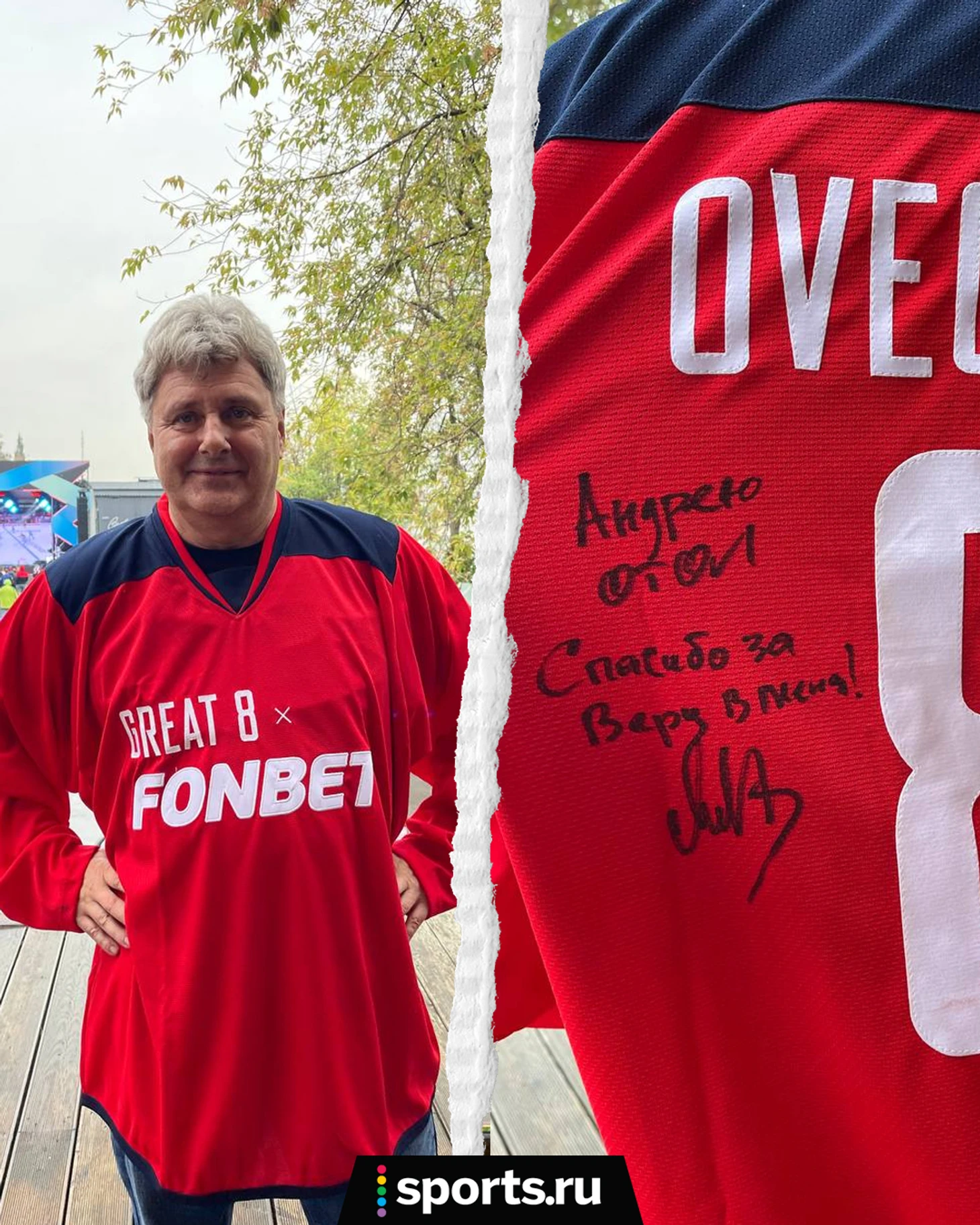 Александр подписал шайбу и джерси: «Андрею от Ovi. Спасибо за веру в меня».