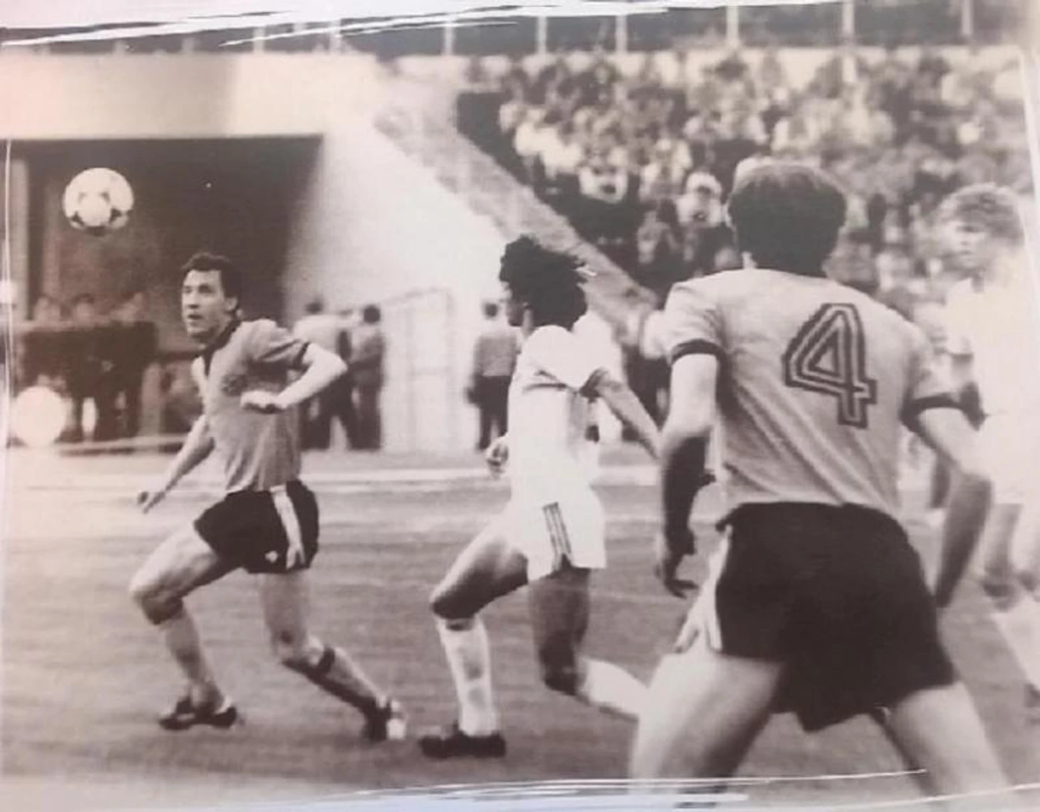 На втором фото игроки молодежной сборной СССР разных лет. Ближе всех к мячу чемпион мира-1977 Александр Сопко. С ним вступает в борьбу Игорь Добровольский – чемпион Европы-1990. Спиной под 4 номером следит за эпизодом Валерий Гошкодеря – игрок молодежки созыва 1981-1982 годов. На подскоке Игорь Колыванов – чемпион Европы-1990.
