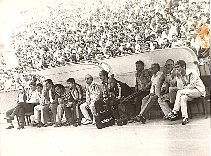 На фото скамейка запасных «Гурии» во время одного из матчей чемпионата СССР-1987. Очень красочное фото, в смысле понимания ситуации в клубе. Потому что при более внимательном рассмотрении задаешься вопросом: «Кто все эти люди?». Ведь на скамейке явно сидят не только представители клуба. Кстати, найдете ли вы среди них Михаила Фоменко?