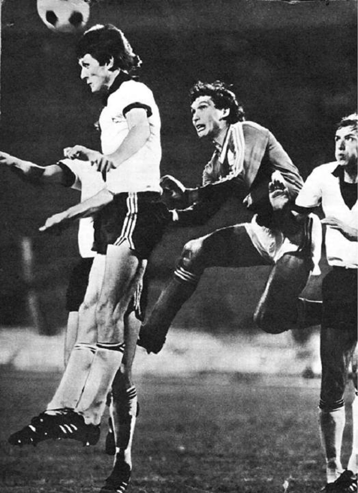 В любом случае, гости украинской столицы из Донбасса не давали свободы киевлянам. Как вот на втором фото Евгений Драгунов и Василий Евсеев плотно опекали Протасова, как бы форвард сборной СССР не выпрыгивал из трусов.