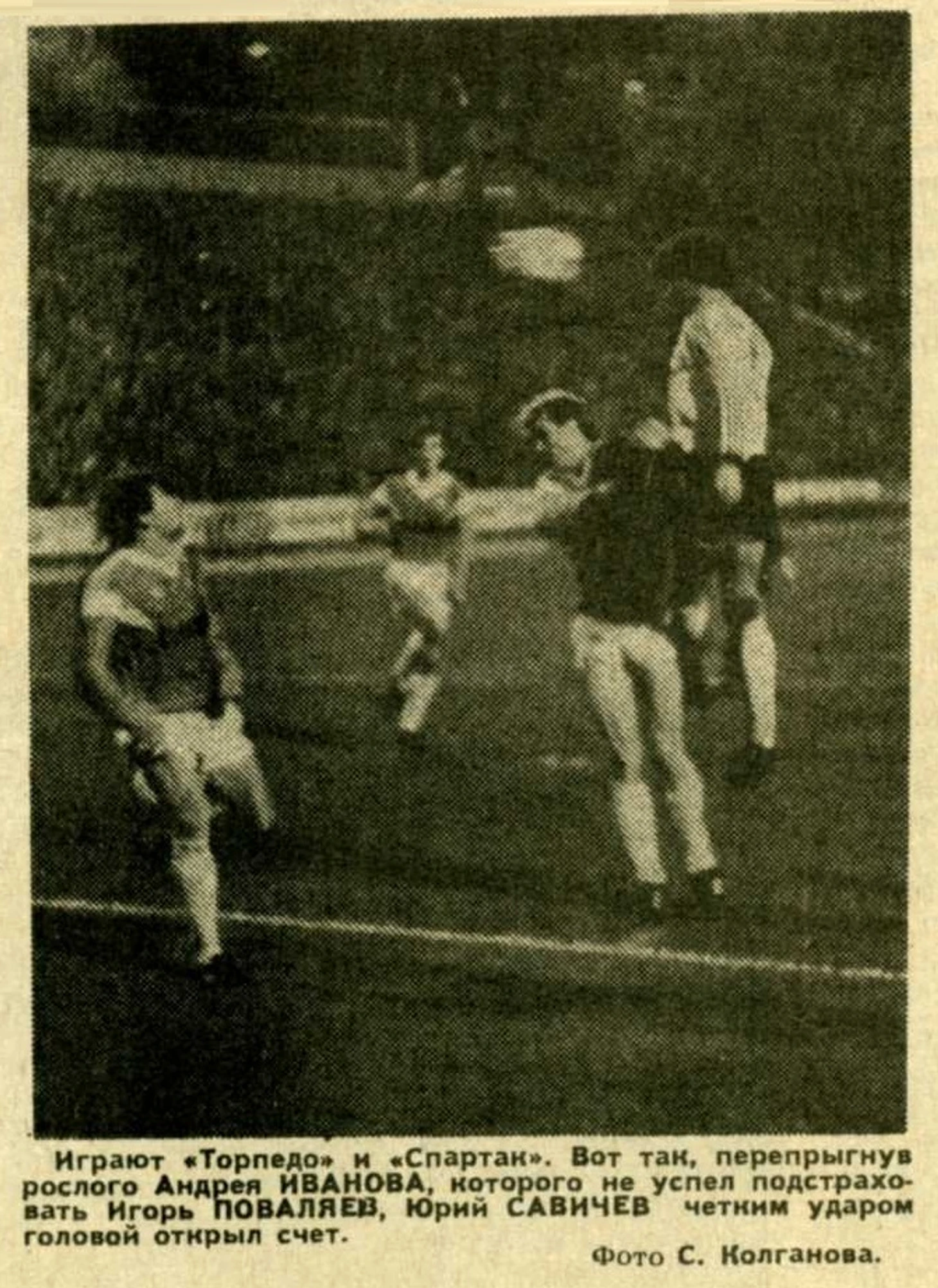 Обе команды играли после тяжелейших ответных еврокубковых поединков. Автозаводы героически отыграли дома у шведского «Мальме» гостевые 0:2, но пропустили в овертайме и вылетели из Кубка УЕФА. Но, главное, боевой запал у них не пропал. И московский «Спартак» попал под настоящий торпедовский каток. Еще перед матчем Валентин Иванов, который с 1967 года дважды на некоторый период покидал тренерский мостик «Торпедо», но неизменно возвращался, заметил, что у его команды это последний шанс вклиниться в борьбу за медали, и для этого нужно побеждать «Спартак», который претендовал на советское «золото». Торпедовцы вышли на матч, как на последний бой в своей жизни. Особенно покуражился автор «золотого» олимпийского гола бразильцам Юрий Савичев. Ему и слово: «Основную работу выполнил Сергей Агашков. Его передача была настолько точной, что мне осталось переправить только мяч в ворота…