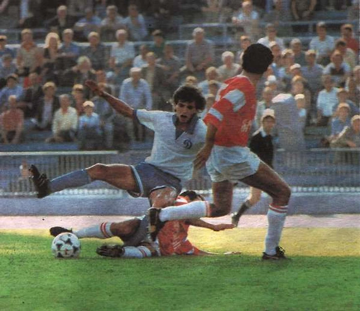 Изучая материалы чемпионатов СССР, перелопатив при этом кучу информации, лично у меня сложилось впечатление, что Лобановский не любил рисковать. Мэтр явно предпочитал стопроцентную синицу в руках журавлю риска в небе. А ведь так часто случается, что именно тот, кто в конкретном матче делает высокие ставки и отдается борьбе до конца, становится, в итоге, победителем. «Днепр»-1988 очень наглядно продемонстрировал сие киевлянам в прошлом сезоне. Неужели Лобановский, даже при явном отрыве «Спартака» все дальше вперед, ни на йоту не отступал от своих ранее намеченных планов набора очков? Если так, то эти планы уже давно сломали спартаковцы, когда разгромили его питомцев в Киеве – 4:1. Так что в таких вот матчах, как с «Ротором» в Волгограде, и нужно было добирать утерянное, чтобы не отпускать далеко лидеров. Если Валерий Васильевич рассчитывал на спад в игре «народной команды России» после блестящего старта, то ведь как бы его самого с «Динамо» не настиг сей «недуг».
