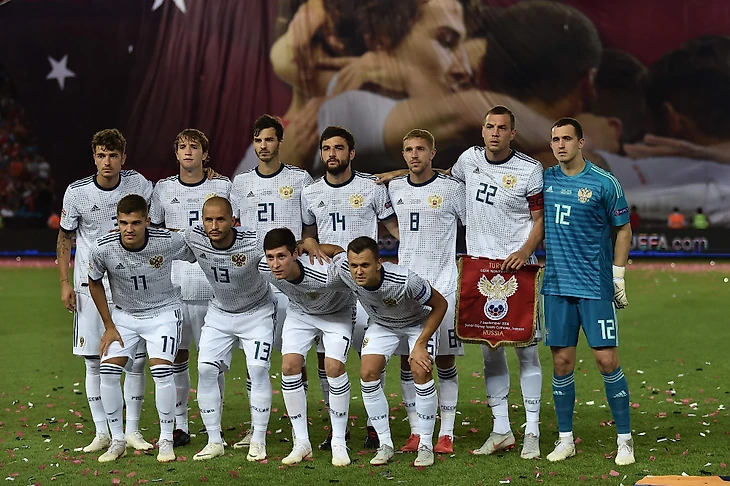 Состав сборной России: Акинфеев - Кудряшов, В. Березуцкий, Новосельцев - Жирков, Шатов, Тарасов, Оздоев, Самедов - Смолов, Ал.Миранчук