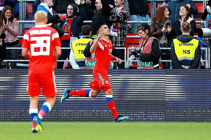 Состав сборной России: Акинфеев - Жирков, Игнашевич, Кутепов, Смольников - Зобнин, Газинский - Головин, Дзагоев, Самедов - Смолов