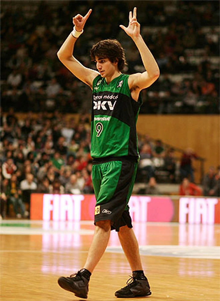 Только представьте: Рики Рубио дебютировал во взрослом баскетболе в... 2005-м году! Когда Кевин Гарнетт ещё тащил будущий клуб испанца, когда Дэвид Блатт ещё не приступил к возрождению славы российского баскетбола, а Гилберт Аринас считался одним из лучших поинтгардов планеты! За 6 дней до своего 15-летия вундеркинд вышел за "Ховентуд" против "Гранады". И этот случай не из оперы "Бедная команда, в которой нет никого, вот и приходится школьника выпускать" - в том составе каталонской команды играли Уэртас, Рибас, Руди Фернандес и Элмер Беннетт. И такой состав решал серьёзные задачи, ведь в первом сезоне Рубио стал обладателем Кубка Вызова. Как вам такой поворот: за год стать самым молодым дебютантом чемпионата Испании и в 15 лет взять третий по престижности европейский трофей? Но если эти достижения были просто записями в книге рекордов, то летом 2006-го Рики показал свой потенциал, приведя сборную Испании к победе на континентальном турнире среди игроков до 16 лет. Ладно бы, просто привёл, - но рекордсмен завершил чемпионат со среднестатистическими показателями в 23,3 очка, 12,8 подбора и 7,1 передачи! Поэтому вы с лёгкостью угадаете, кому досталось звание MVP.