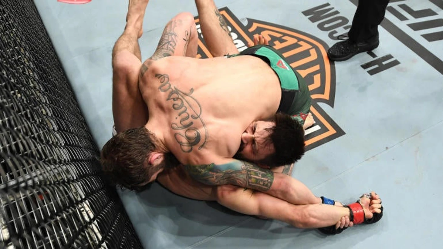 Нагло и смело. Правда, cначала надо устроить кошмар для Мендеса. И австралийский македонец пошёл сразу доказывать достоверность своих слов, пытаясь забросать оппонента киками, не достигавшими цели. Тогда как Чед неплохо пробивал навстречу за счёт удивительной скорости ударов. Александр всё же начал пристреливаться, но снова пропускает в голову и корпус. Правда, ему этого мало, он начинает подбадривать соперника. Это, конечно, радует: только как "гроза Холлоуэя" планирует побеждать? Видимо, продолжать идти в размены - и тут Чед сначала ловит македонца боковым, а уже у канатов цепляет Александра левым хуком так, что тот упал. Но Мендес не был бы самим собой, если бы не упустил шанса завершить бой. Тогда как Волкановски уже пришёл в себя и сам чуть не забил Чеда, но пропустил бросок. Далее ещё один проход американца, молниеносный выход за спину и неудавшийся захват шеи. Тут Алекс понял, что пора бы воспользоваться упадком сил бывшего претендента на титул и включить колени вперемешку с руками. И Чед Мендес снова падает в нокаут. Будучи фаворитом. Судьба его обожает. Не думаю, что это взаимно.