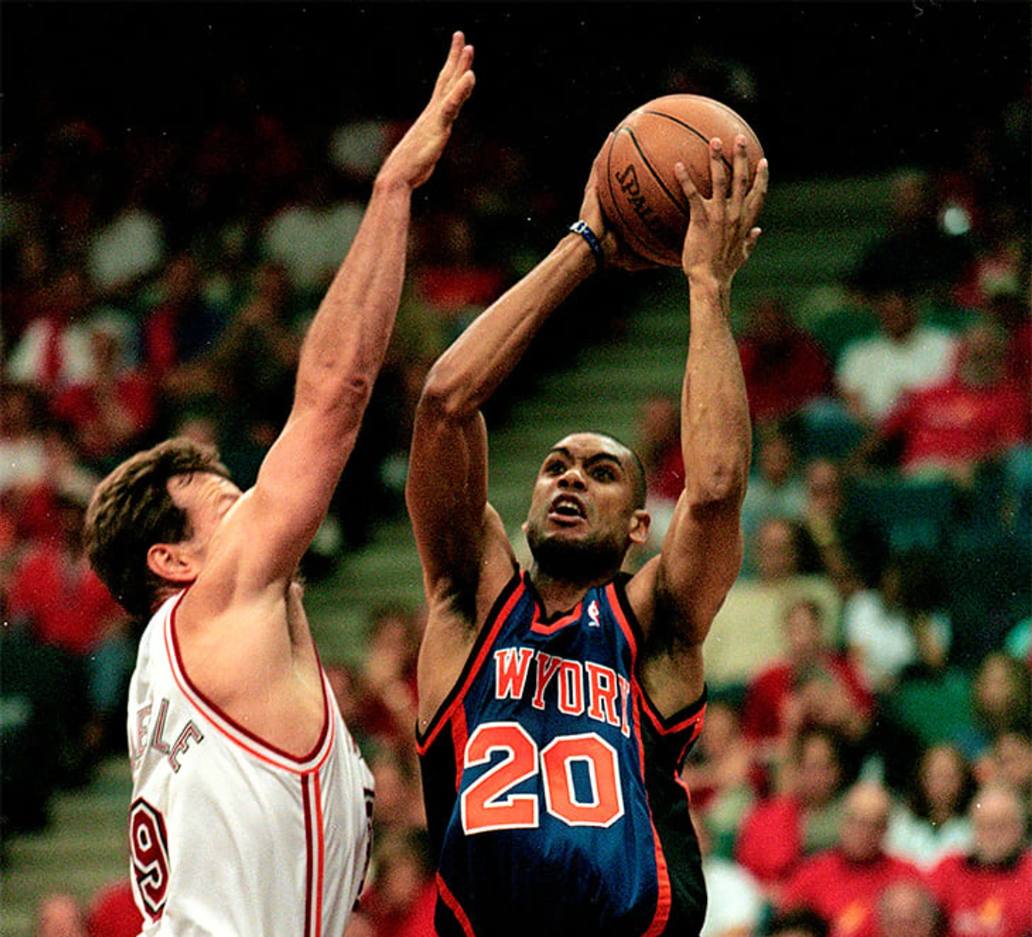 Но времени на рефлексию о несправедливости бытия не было. Теперь наследие Юинга зависело от его более молодых и шустрых одноклубников, которые вцепились в шанс взять Восточную конференцию. Внезапно самым опытным игроком стал Ларри Джонсон, проводивший седьмой сезон в Лиге. Как и Юинг, он уже прошёл свой пик и превозмогал хронические боли в спине, из-за которых ему придётся рано завершить карьеру в 2001-м году. Да, Ларри не был оплотом команды наподобие Большого Пэта, но его быстро полюбили в Нью-Йорке за природное обаяние и гордую задиристость.