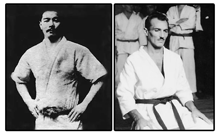 Слева - Мицуё Маэда, показавший бразильцам дзюдо. Справа - Элиу Грейси, переосмысливший показанное дзюдо в бразильское джиу-джитсу.