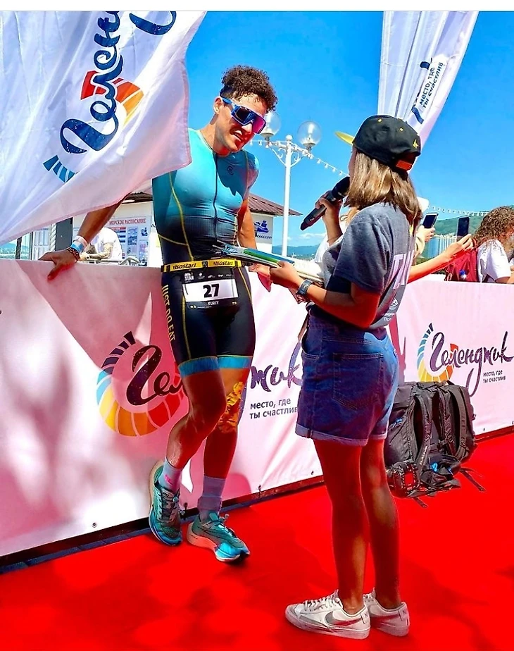 За 2 минуты до начала на пляж вбежала Инна Тутукина с гидриком в охапку: невероятно, но она, главная претендентка на победу в этой гонке, опоздала. Стала надевать гидрик, попросила ей помочь, мы втроем с девчонками приняли натягивать получше и застегивать костюм. Помогала - одной рукой - и Ира Гражданова, паралимпиец, серебряный призер Паралимпиады по плаванию. Впоследствии Ира великолепно выложилась на дистанции, догнать ее мне удалось только в середине бегового этапа.