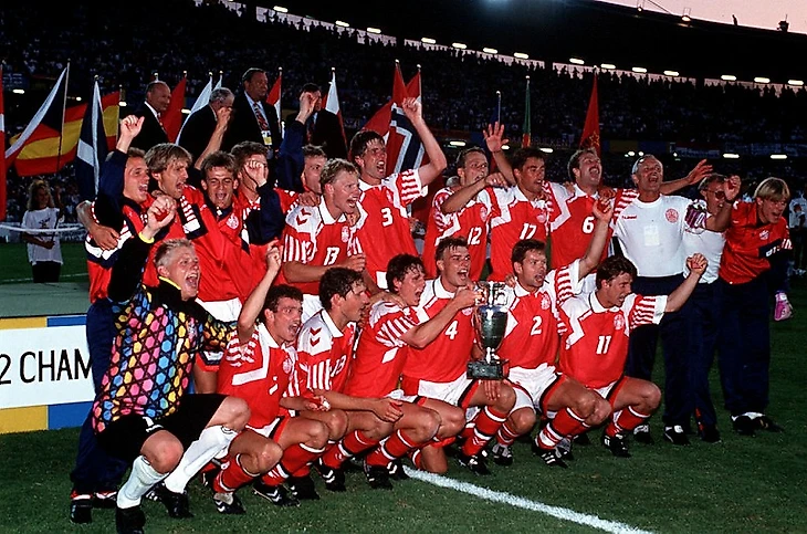 Во-вторых, они сенсационно обыграли сборную ФРГ по футболу в финале. На протяжении всего турнира, было видно, что сборная ФРГ достойна выиграть это ЕВРО, многие думали, что так и произойдет, но, увы... Датчане в финале поймали кураж, начали играть в открытый футбол и забили два мяча в ворота сборной ФРГ! Стоит отметить еще игру Петра Шмейхеля в тот день, он был одним из лучших на поле и оставил свои ворота "сухими".