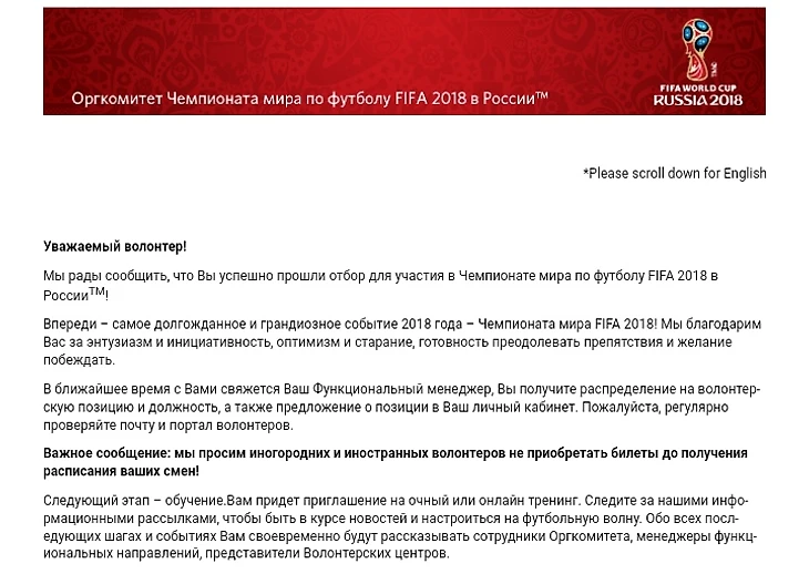 Пару слов о волонтерской программе чемпионата мира по футболу: